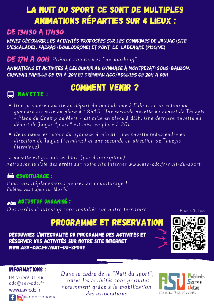 La Nuit du Sport est un temps fort convivial et fédérateur qui met à l’honneur la pratique sportive sous toutes ses formes. Cette nouvelle édition se déroulera le samedi 28 mars 2026 et promet un moment dynamique, accessible à tous les publics, placée sous le signe du partage et de la découverte.